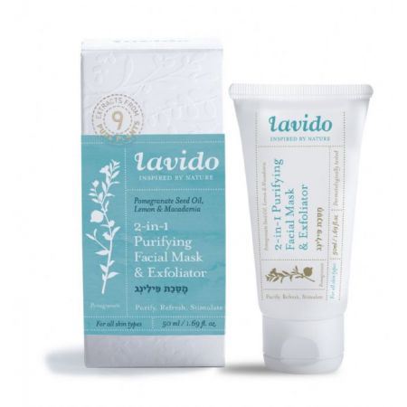 מסכת פילינג 2 ב-1 (50 מ"ל) - Lavidoשמן זרעי רימון, מקדמיה ולימון מחדש, ממריץ ומרענן, מעניק חוויה של התחדשות לעור הפנים. גרגירי הפילינג המופקים מקליפת הרימון, מעסים את העור ומסירים בעדינות את שכבת התאים שאינם פעילים. שילוב השמנים האורגנים הטהורים מעניק מראה עור אחיד, חלק ורך למגע. מתאים לכל סוגי העור.הוראות שימוש: יש למרוח ולעסות בעדינות בתנועות סיבוביות. לאפקט מסכה יש להמתין כ-15 דקות לפני השטיפה במים. מומלץ לשימוש 1-2 פעמים בשבוע.