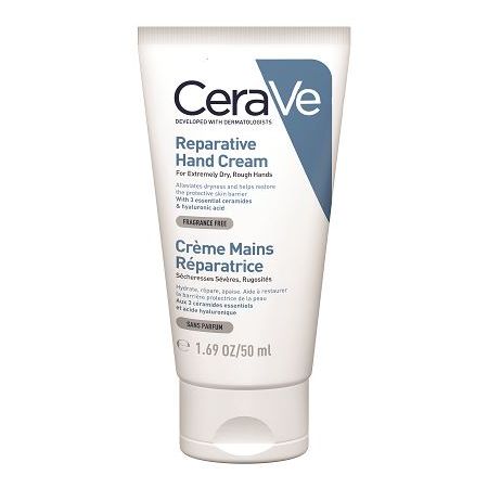 קרם ידיים משקם (50 מ"ל) - סרווהCERAVE Therapeutic Hand Cream קרם ידיים משקם לידיים מחוספסות ויבשות במיוחד מקל על היובש ומסייע בשיקום שכבת ההגנה הטבעית של העור מכיל 3 סרמידים חיוניים וחומצה היאלורונית היפואלרגני. ללא בישום. ללא פארבן. אינו משאיר תחושה שמנונית. פותח עם דרמטולוגיםתכולה: 50 מ"ל
