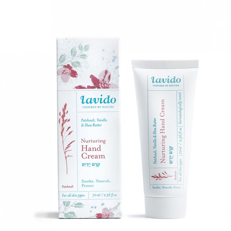קרם ידיים פטשולי, וניל וחמאת שיאה מסדרת רוח וגוף של לבידו Lavido, מרכך, מזין, מטפח.