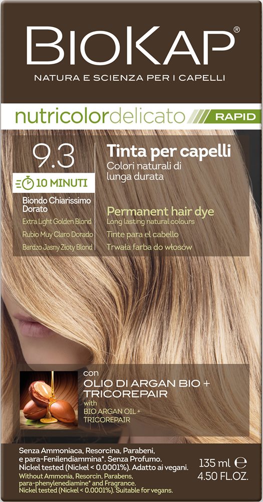 צבע טבעי לשיער, אינו מכיל: אמוניה , רסורסין, פרבנים, PPD, בישום, נבדק שאינו מכיל ניקל. נוסחה חדשה לצביעה ב 10 דקות מכיל שמן ארגן. מכיל 135 מ"ל