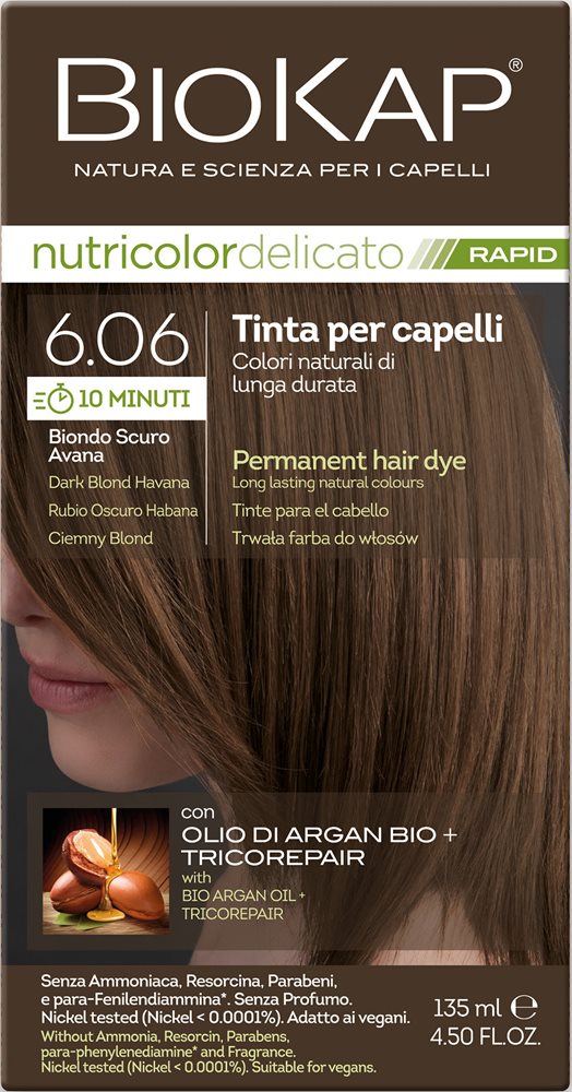צבע טבעי לשיער, אינו מכיל: אמוניה , רסורסין, פרבנים, PPD, בישום, נבדק שאינו מכיל ניקל. נוסחה חדשה לצביעה ב 10 דקות מכיל שמן ארגן. מכיל 135 מ"ל